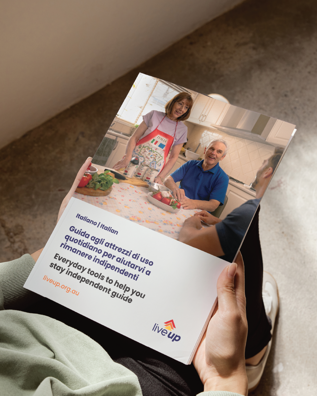 The Everyday Tools to Help You Stay Independent ('Everyday Tools') resources were made by LiveUp in partnership with Little Rocket agency and a working group of Italian Australian community members.